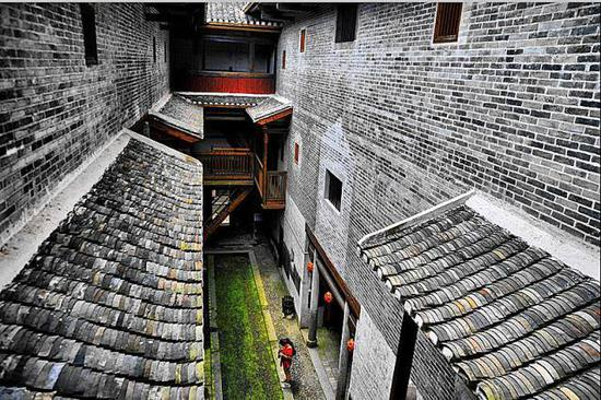 围楼青灰色的屋檐与外墙,在粗粝雄浑中,又透露出几分精致典雅。