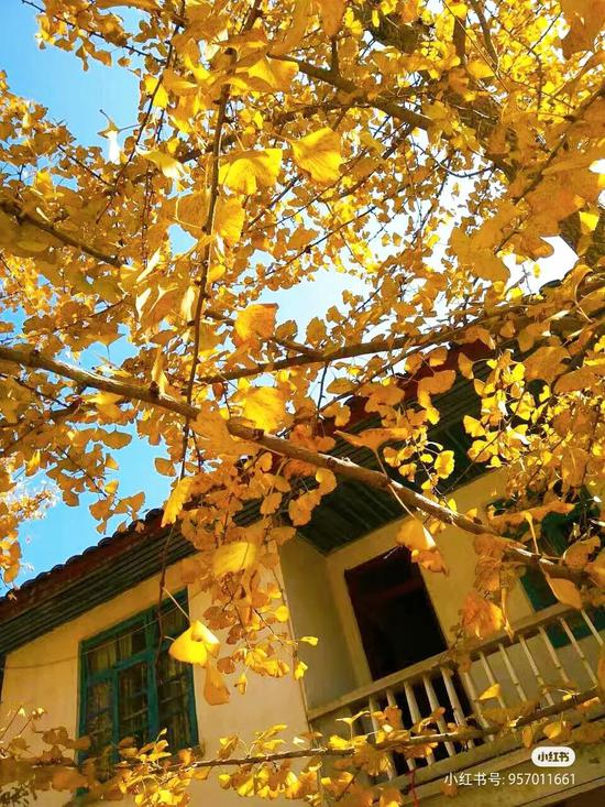 尤其是配上黝黑的屋檐、土黄的墙,莫名地就勾起人的怀旧感,恍惚中,家门口也有这么一棵银杏,倚在墙边,伴我度过许多个秋天。