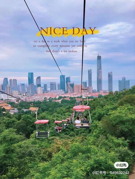 红瓦绿树欧式建筑,坐在索道上,整片青岛的风光都可以一览无余,近处是城市,远处是山海,视野相当开阔。