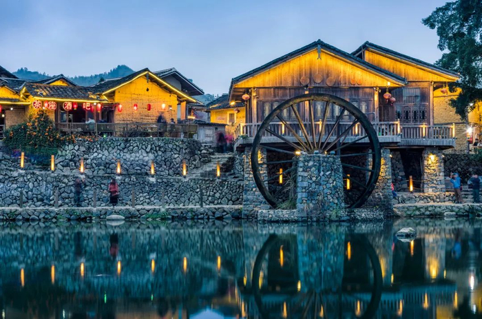 脚踩着的是疙疙瘩瘩的石子路,古道旁是百年历史的老房屋,耳边充盈着风车带动的水流声。。。。。。