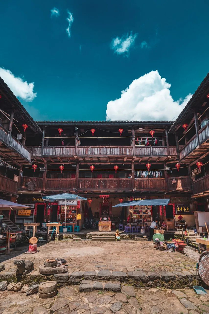 这是福建省内同类建筑中单体最大的双环圆形土楼,它可以说是闽南土楼与客家土楼的完美结合。