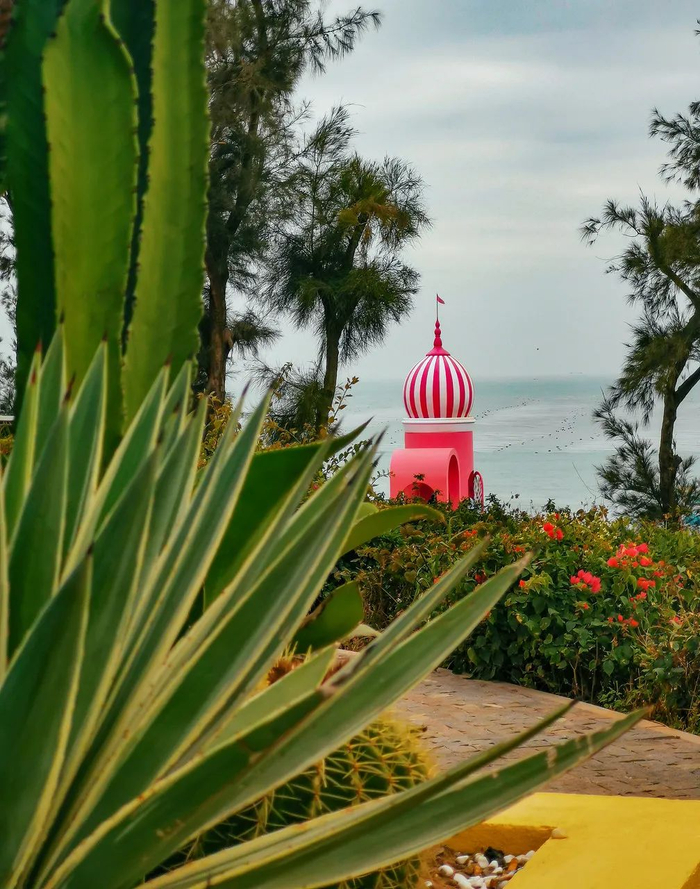 灯塔 、绿植、热气球、粉红建筑…连骨子里都透着清新。