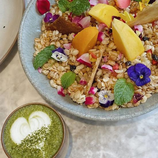 想要吃得轻盈一点不妨试试像花园一样的谷物碗。yogurt作为基底,上面铺上满满的水果和谷物,还有鲜花点缀,好看又美味。
