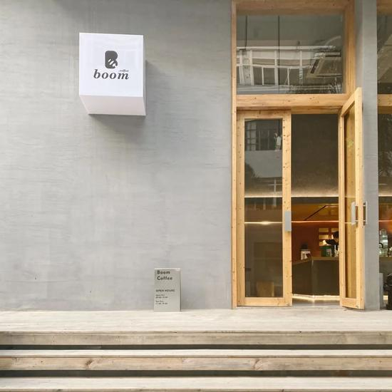 跟朋友约在华侨城创意园附近,在一众办公楼里找到了这家Boom Coffee。挑高的灰墙和一整面敞开的落地玻璃,于周围环境中十分出挑。
