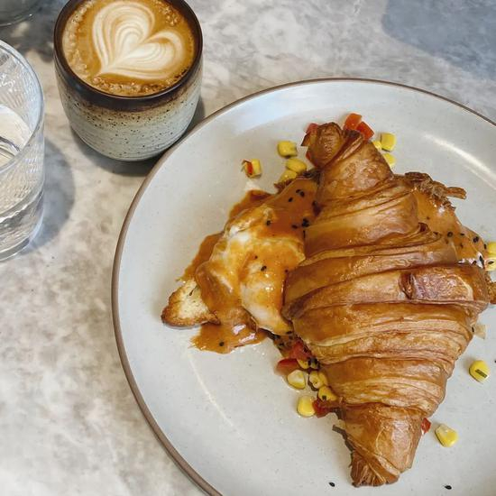 咸食必点这道人气第一的烟熏手撕猪肉班尼迪可颂。烟熏猪肉搭配爆浆的温泉蛋和浓郁酱汁。用酥皮的可颂沾着吃,层次丰富,大口满足。苏格兰蛋牛油果吐司也很不错~