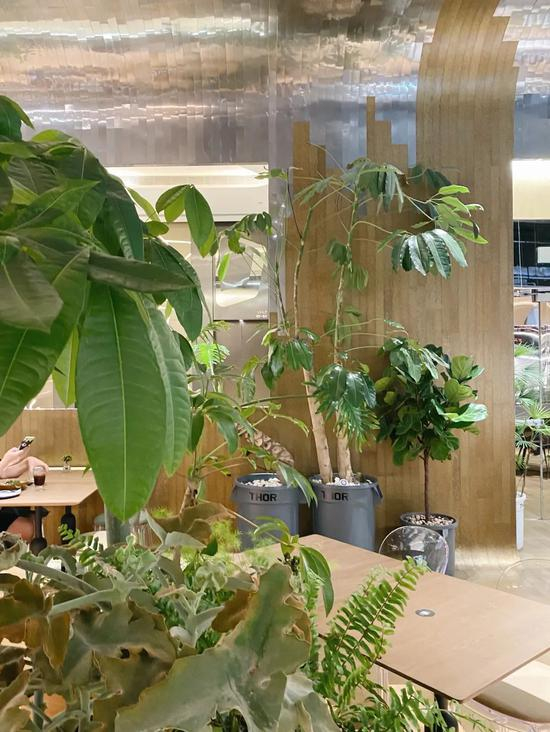 原木结合不锈钢、混凝土的空间,简约而现代。最喜欢的还是它装进的灿烂阳光以及随处可见的绿植。让人仿佛置身于室内花园般清新自然,十分舒服。最适合周末和三五好友相聚chill一下。