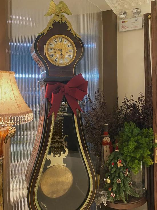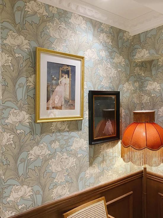 落地的大摆钟,流苏的布艺台灯,繁复精美的印花墙纸。。。。。。到处都是复古的元素,装点用心。