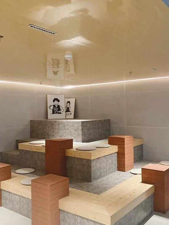 店内的另一边是一个像看台般的座位区。跃层的台阶,由各种材质和色彩的立方体组成,颇有设计感。不过我最爱的还是坐在窗台上感受阳光。窗外来往的行人也是一幅风景。