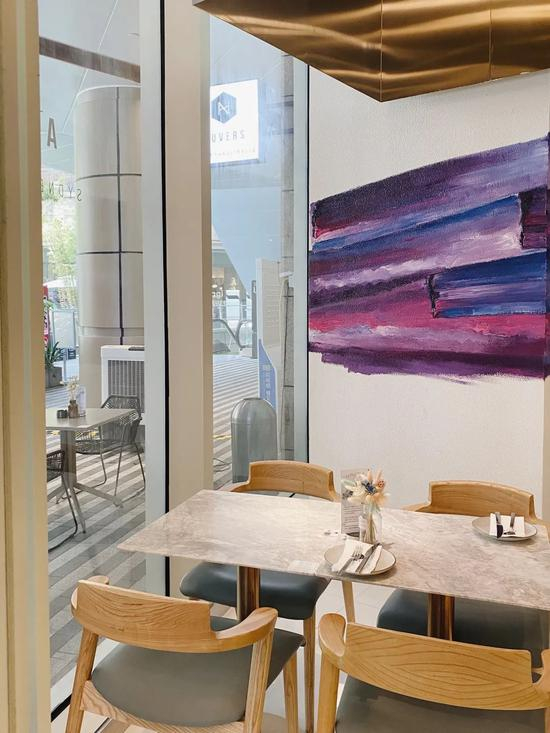 装潢的风格也十分具有活力。充满艺术感的彩色墙面涂鸦,轻巧的家具配色,很适合早晨蓬勃的朝气。