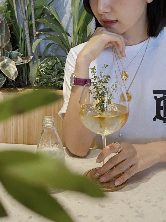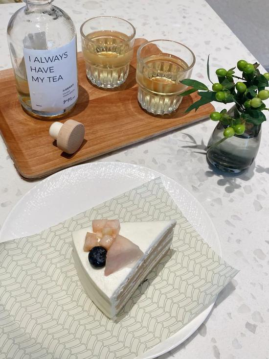 当然,你还可以在这里小酌一杯。乌龙金酒是我最喜欢的一款,茶香与金酒的草本香在tonic water的刺激中碰撞出淡雅的口感。阳光下冒着气泡的高脚杯让人心情愉悦。粉嫩的水蜜桃千层蛋糕也很推荐哦~