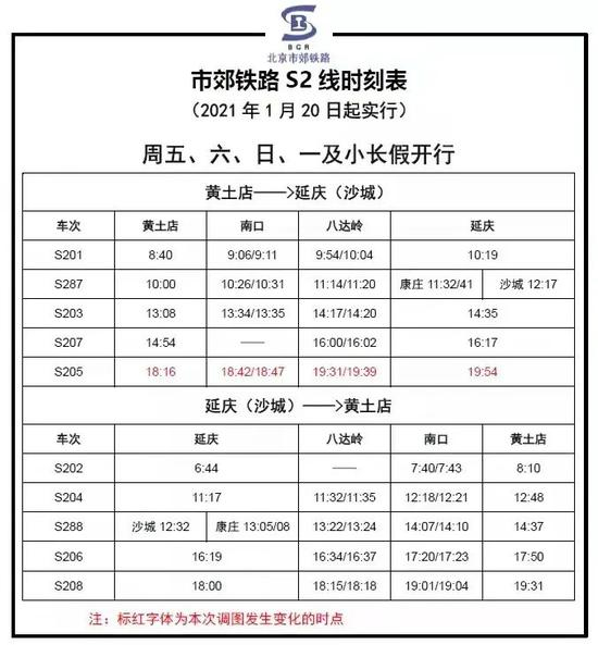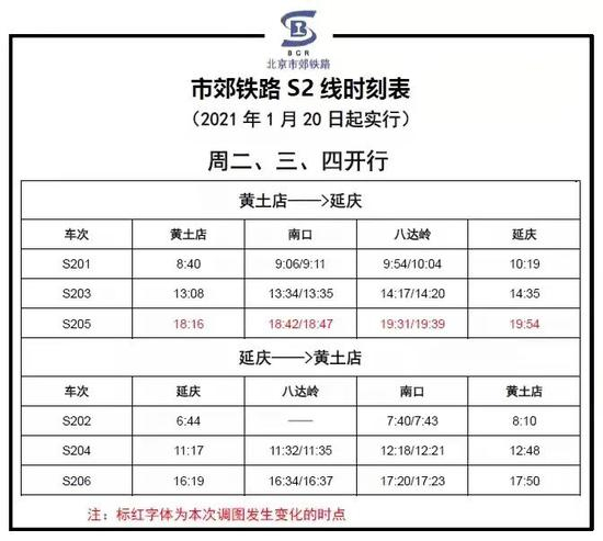 S2列车是北京市第一条市郊快速通勤铁路,该线路由北京市昌平区黄土店站始发,途经昌平区,终点为延庆区的延庆站和河北省张家口市怀来县的沙城站。