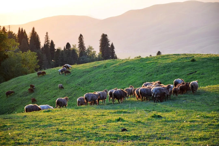 喀拉峻草原相当之大,当然也相当之美。天边的云萦绕着森林,一层一层交叠着,成群的牛羊悠闲的吃草,空中秃鹰掠过天空,这世间万物都在悸动,但却永远打扰不了这片宁静之地。