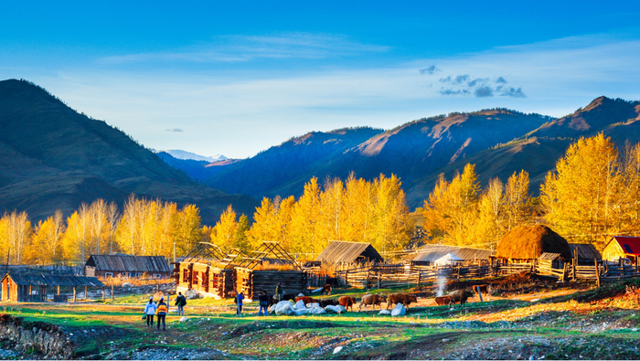 白哈巴是新疆最为岁月静好的地方,也同样是新疆最像是童话小屋的地方。一栋栋木质小屋,在如画的美景之下,显得有些可爱,仿佛是孩童时期梦里存在的地方。