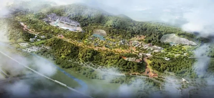 酒店楼顶与矿坑坡顶路持平,可见自峭壁顶部倾泻而下的雾瀑壮观景象。规划有115间客房,所有客房都配备温泉泡池。
