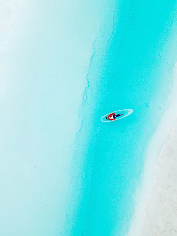 湖水清澈见底,就像是掺杂各种蓝色的玻璃海,在阳光的照耀下,光彩夺目。