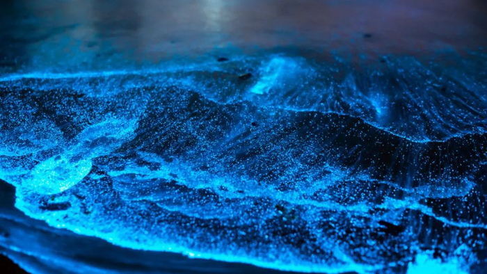 就像银河坠入了海里,在海水里行走,就像脚踏星辰一样,美到窒息。