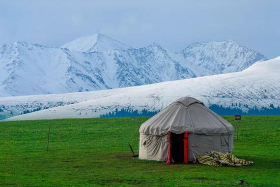 袅袅炊烟,从哈萨克牧民的毡房中升起。