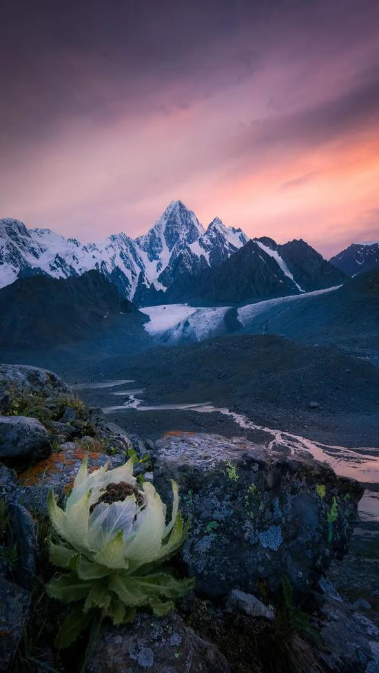 你能想象,前一秒,还沉浸在郁郁苍翠的雪岭云杉,下一秒,就邂逅了冰原之上盛放的天山雪莲吗?