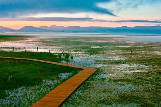 看霞光在天的尽头,变幻出瑰丽的色彩,如梦似幻,看各种鸟类合家欢的天堂……