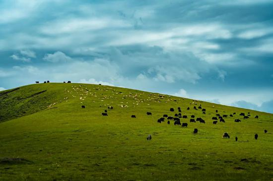 纯正而灵性的黑,如同黑色珍珠,滚动在甘南浓绿的草原上。牦牛的眼眸,是那样清澈又深邃,