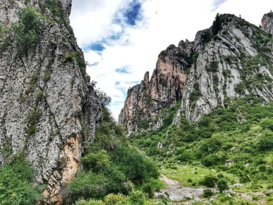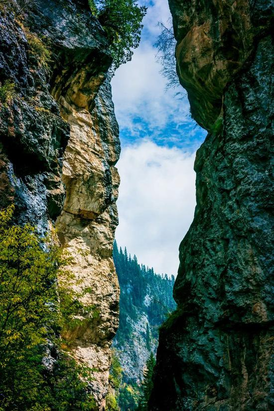 峡谷的深处,一片浓郁的草原跃入眼帘。在苍翠秀丽的群山环抱中,宛如来到了神祗的自留地。