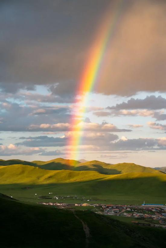 霞光中的扎尕那,是真正的人间伊甸园。你可以静静伫立,收藏这个星球上最美的晚霞,看崇山峻岭、草原山林,覆没在绚丽变幻的色泽中。橙黄、粉紫、灰蓝……还有各种想象不到的唯美色彩,你都可以一一捕捉、铭记,当天空尽头,若隐若现出一道彩虹,仿佛身在梦中。