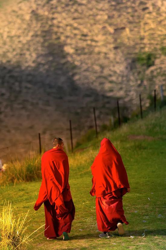 你可以跟随红袍僧人的身影,拜访散落在草原上大大小小,知名或不知名的寺庙。