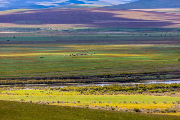 除了草原和森林,这里还有湖泊、沙地、峡谷、温泉等多种地貌,牛羊成群、骏马奔腾、候鸟栖息……