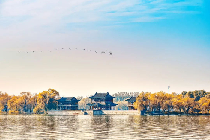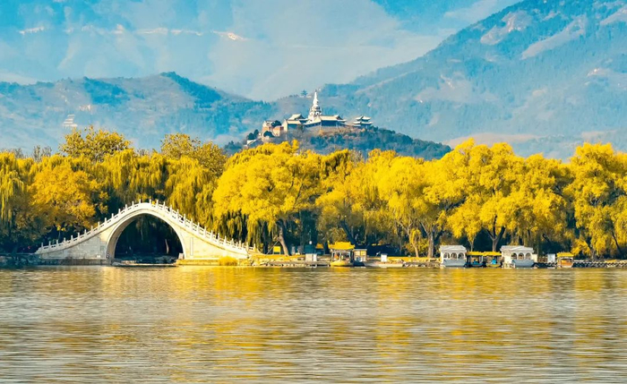 作为皇家园林,颐和园以昆明湖、万寿山为基址,以杭州西湖为蓝本,汲取江南园林的设计手法而建成,游走其中,恍如身处南国。