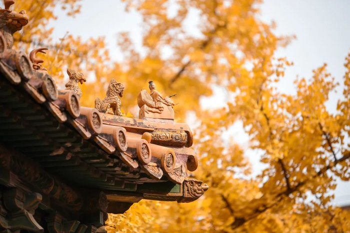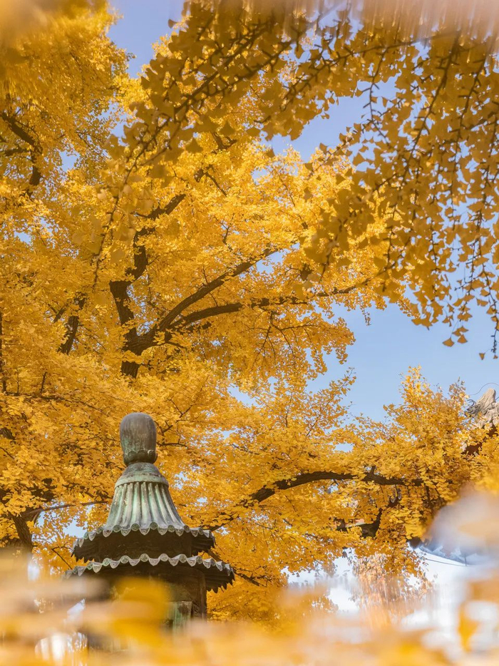 金黄色的银杏树、古色古香的寺庙、不冷不热的天气。。。。。。