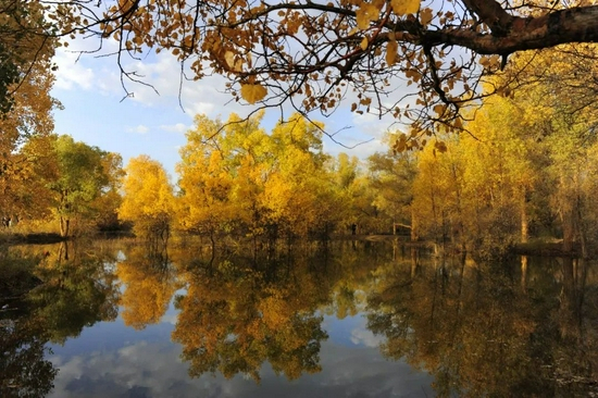 额济纳旗胡杨林是现今世界上仅存的三大原始胡杨林之一,也是世界上存活面积最大的一片胡杨林。
