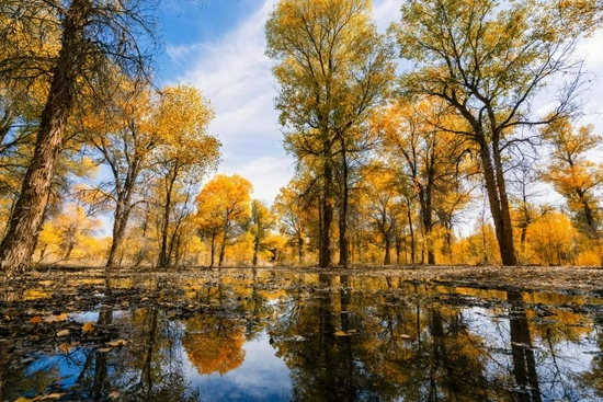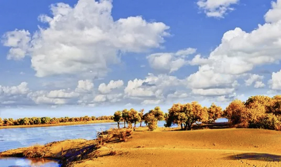 澄澈明净的蓝天白云、流淌着的额济纳河,大片胡杨林海逐渐变成金黄,成为了北国大漠深处一抹醉人的惊艳,全国各地的旅行者都想一睹这44万亩原始胡杨林铺陈出来的金色世界~