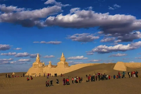 西夏黑城、黑水城和连绵起伏的沙漠一起构成大漠戈壁上的一颗明珠,城墙上的佛塔,城墙外的清真寺残骸仿佛在向我们诉说往日的繁华,但仅残留塔基,整座遗址让人不仅唏嘘不已。