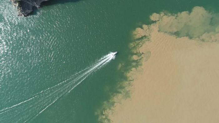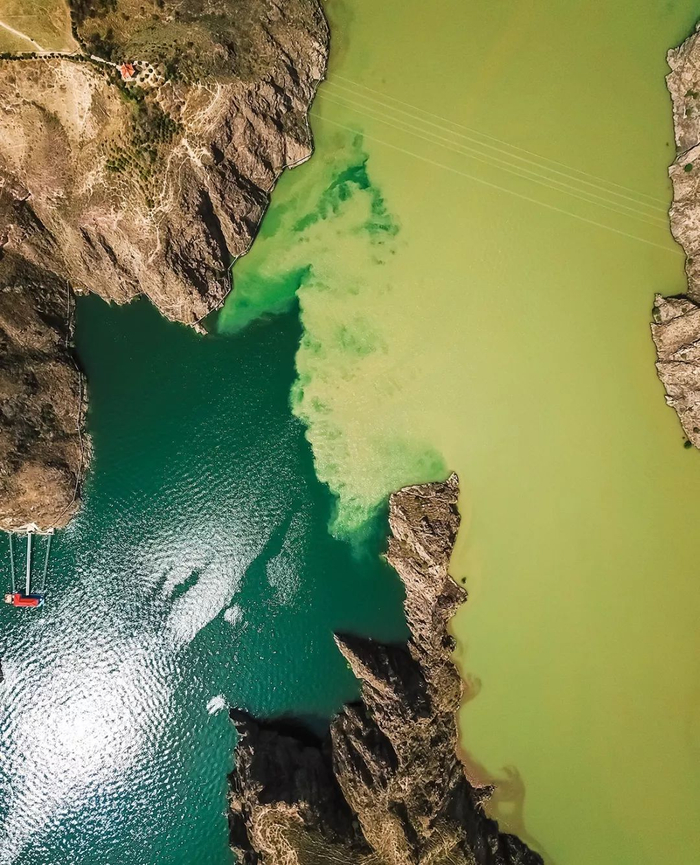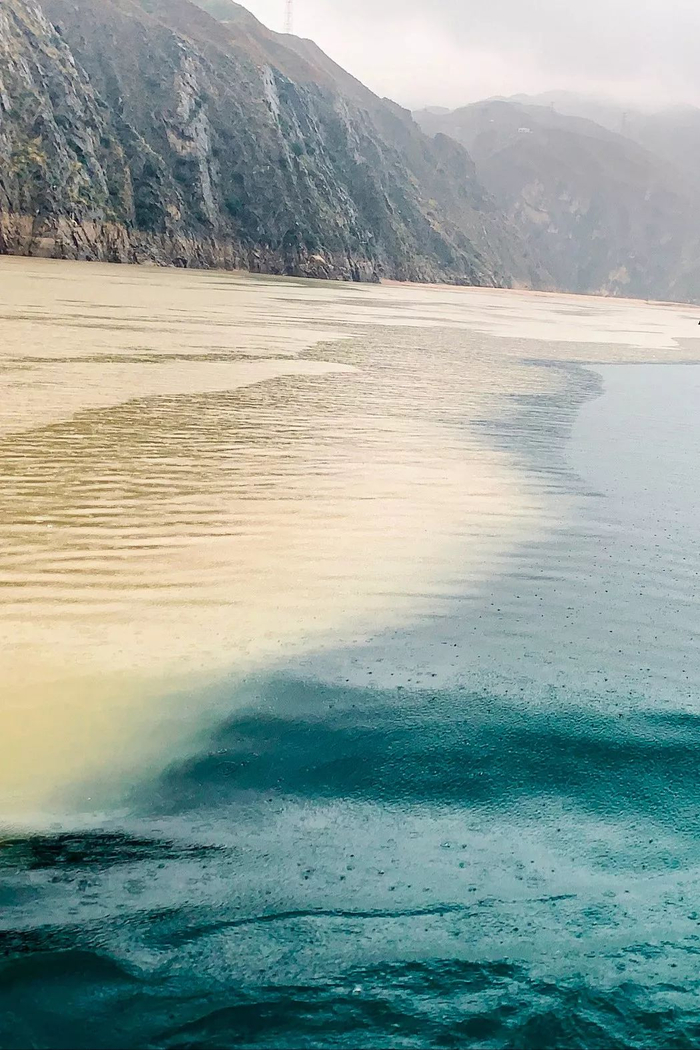 在刘家峡水库,泥黄的洮河与清澈的黄河相遇,水乳交融,从此黄河真正成为了“黄”河。