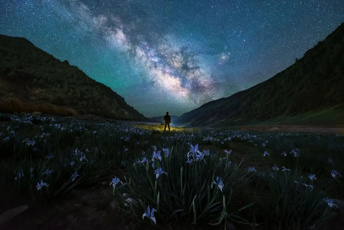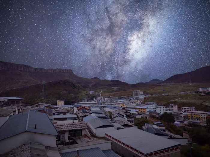 清冽纯净的夜晚,你会看到澄澈的银河熠熠升起,竖立在一片寂静而辽阔的苍穹。