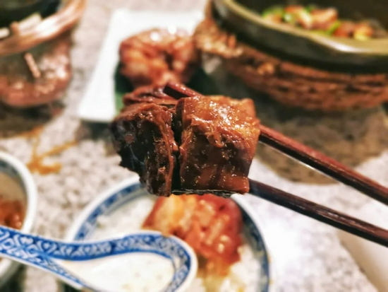 韩复兴选用的鸭子偏瘦,紧实酥烂,更加能突出鸭肉的清香,切成片状的鸭肉看起来莹白透亮,入口味道更是一绝。