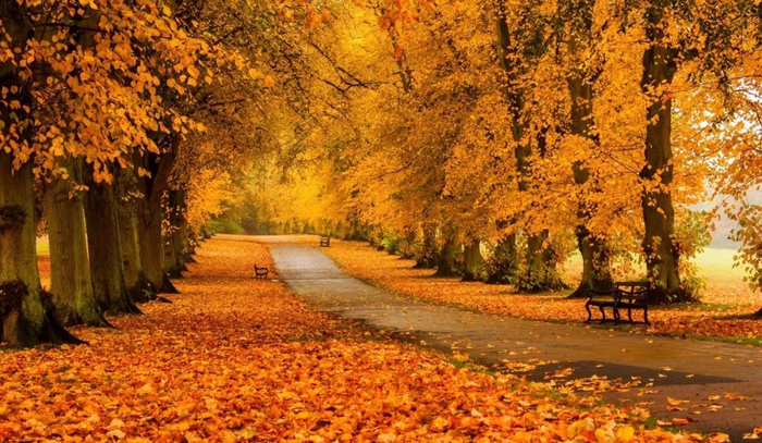 坐在校园的长条凳上,看金黄的银杏在风中翻飞,落满了长凳,落了满地,