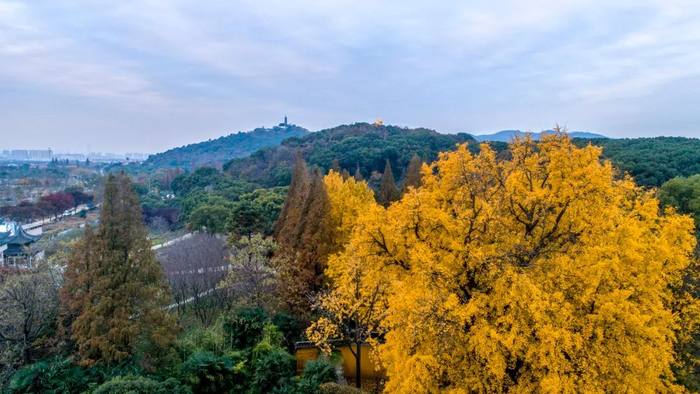 “姑苏城外寒山寺,夜半钟声到客船”,深秋时节,耳畔传来阵阵钟声,看着银杏叶缓缓飘落,这是寒山寺独有的秋日韵味。
