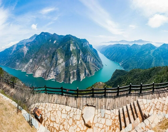 除此之外,我们还能沿着三峡之巅一路领略长江的壮美,徒步到白帝城,危石鸟道、诗意栈道、天音神道下行。。。。。。一步一景,美到惊艳。