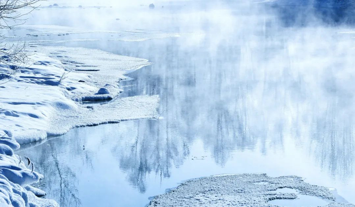 在四周全被零下几十度的超低温封冻的时候,不冻河的水蒸气还在源源不断往上冒。