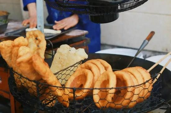要是觉得干了,就配上一碗蛋酒或者酸甜米酒。再搭配几个面窝。面窝,吃起来厚处松软,薄处酥脆,挖洞操作简直是点睛之笔。