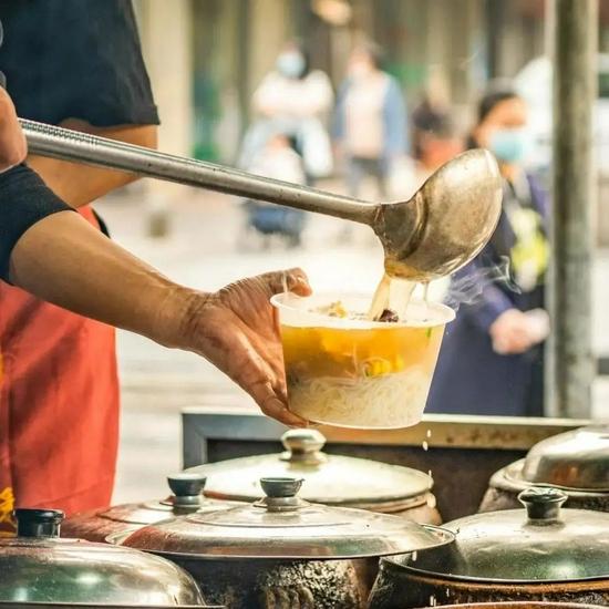 武汉过早,特色小板凳安排。当然,如果店面选址得天独厚,正好旁边有一排路墩子,那估计大家就心照不宣了,端一碗面过来坐下,一个接一个。一个街头版天然食堂就地成立。