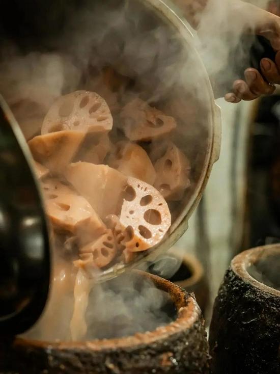 粉藕软糯绵密,特能拉丝,肉要煨到绵烂,几乎融于汤。吃完粉藕再一口鲜香汤汁,保准下次再喝别处的莲藕排骨汤就“曾经沧海难为水”了。
