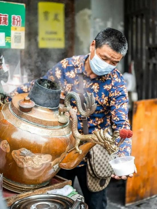 要是逛街正好路看见街头有现冲的荷叶莲藕粉,可以来上一份。特有的糯藕粉冲制,再加上山楂、葡萄干、坚果碎和黑芝麻,绝对是街头小吃即食才有的感觉。