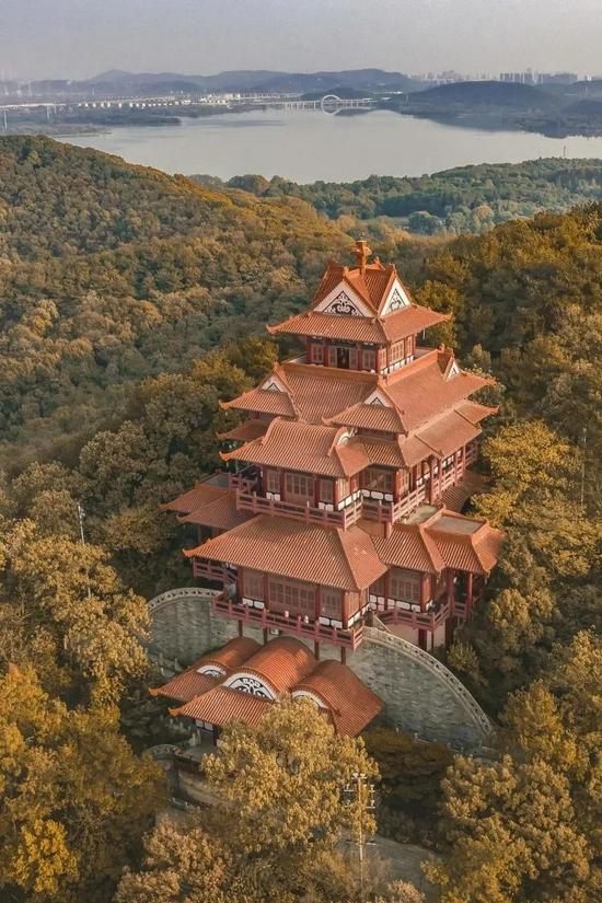 磨山景区可以消磨一天。东湖之眼、东湖索道、索道、东湖栈道统统都在这里。东湖栈道比较长,可以扫个自行车,最近赏秋绝佳,高低起伏的秋色尽收眼内。