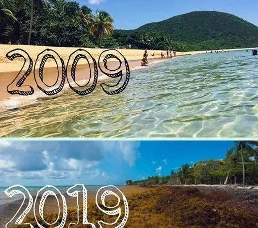 由于全球变暖,法国的一座小岛,已经被埋葬在海藻之下。