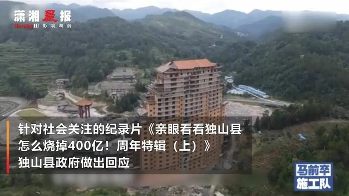 视频里,矛头直指独山县高举债大开发项目却烂尾的失败,水司楼更以“最大烂尾楼”黑红出圈。