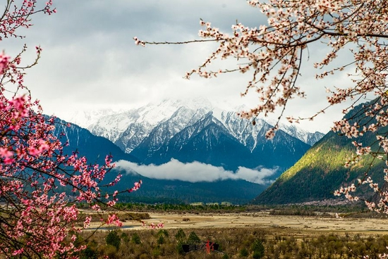 每年三四月份,当冷空气还在高原肆虐,藏地的一切也都还沉睡在冰雪之中,海拔较低的林芝便在春风的吹拂下绽放出绵延百里的花海,满山粉嫩。