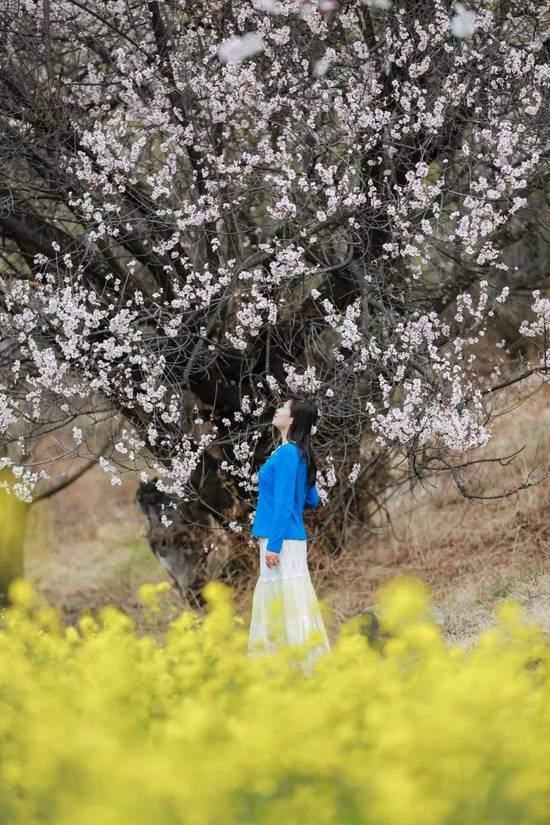 当桃花遇到油菜花,温柔的粉色之间用温暖的鹅黄色点缀,很有层次,出片率百分百;