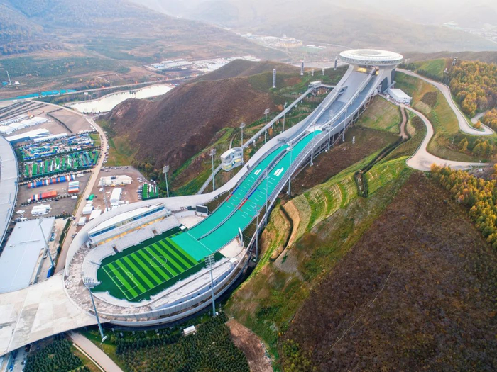 当然,来崇礼一定要看看国家跳台滑雪中心。因为建筑灵感来自于,中国传统饰物“如意”,所以也被大家称作“雪如意”。它可是中国首座跳台滑雪场馆,也是世界上体量最大的跳台滑雪场馆。